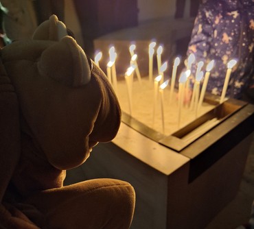 Los ging es im Raum der Stille. Dort hat Chili alle begrüßt. Reinhard hat erzählt, warum die Kerzen so wichtig sind, und jede und jeder durfte eine eigene Kerze anzünden – ein wunderschöner Anfang!