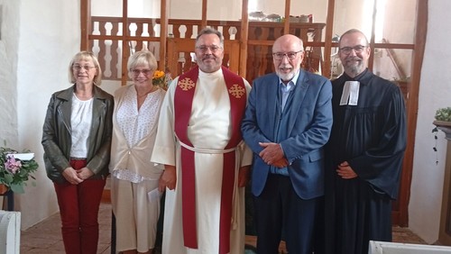 Zur Übergabe war eine kleine Delegation aus Ibbenbüren angereist. Ortspfarrer Stefan Kemper-Kohlhase ist gebürtiger Ibbenbürener und hatte die Übergabe der liturgischen Möbel von Westfalen in die Altmark in die Wege geleitet. Mit den beiden Ruhestandspfarrern Reinhard Paul und Andreas Finke gestaltete er einen abwechslungsreichen Gottesdienst. Am neuen Taufbecken fand auch sogleich eine Taufe statt.