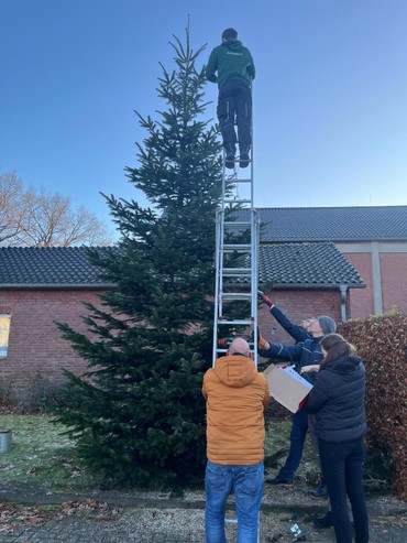 In den Morgen- und Abendstunden erstrahlt der Baum nun in einem warmen Licht und verleiht dem Parkplatz vor der Kirche eine stimmungsvolle, adventliche Atmosphäre. Wir danken allen Helferinnen und Helfern für ihren engagierten Einsatz sowie der Obstplantage Morris herzlich für die großzügige Spende.